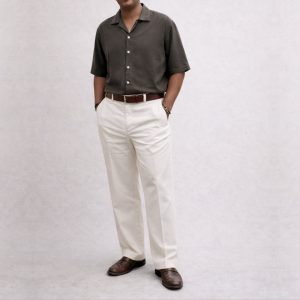 Lans Relaxed Cuban Collar Charcoal Olive Shirt paired with the Relaxed Solace Spandex Cotton Pant – Mens (XS to 4XL)