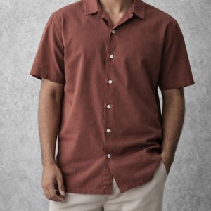 Lans Relaxed Coffee Brown Cotton Point Collar Short Sleeve Men’s Shirt
