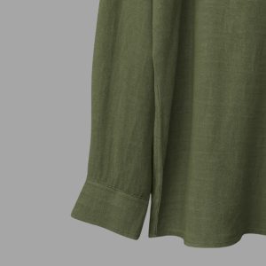 The sleeves fall with ease, slightly roomy and designed for movement. Whether worn tucked, untucked, half-tucked, or layered over a crop or camisole, the Vesper V Shirt adapts effortlessly to your style. It’s a piece that works from morning to evening, casual to refined, with simple accessories or none at all.