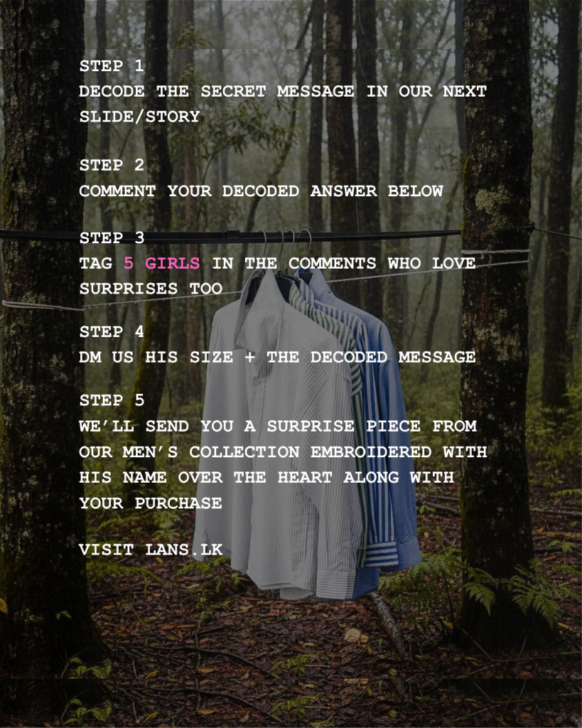 At Anokhi by Lans, we’re celebrating love, style, and secrets with a limited time campaign where you decode a message, and we stitch a personalized gift just for him , What’s the Prize?