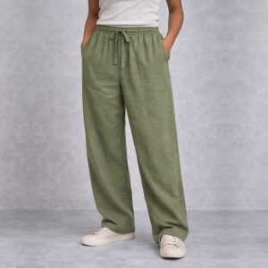 Lans Oversized Washed Cotton Woman’s Long Pant – Olive Green ( XS to 4XL )