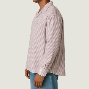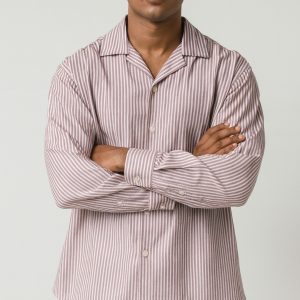 Lans Oversized Band Collar Hydra Striped Shirt – Euphoria Embroidery (XS–4XL)