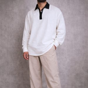 Lans Oversized Retro-2026 Dual-Tone Linen Long Sleeve Shirt- Off White ( XS to 4XL )