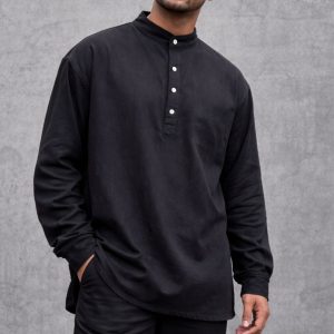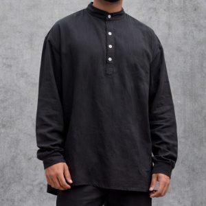 Lans Oversized Colonial Premium Loop down Mandarin Collar Shirt – Black ( XS to 4XL )