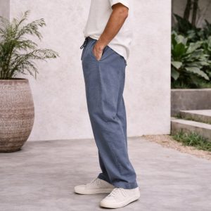 Lans Oversized Washed Cotton Men’s Long Pant – Stone Blue ( XS to 4XL )