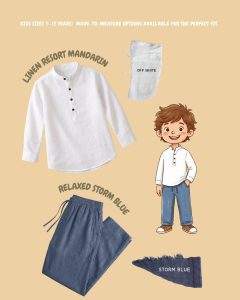 Be the first to review “Lans Linen Resort Mandarin Kids Unisex Full Outfit (XS to 4XL)”