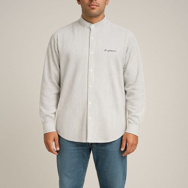 Lans Oversized Band Collar Hydra Striped Shirt – Euphoria Embroidery (XS–4XL)