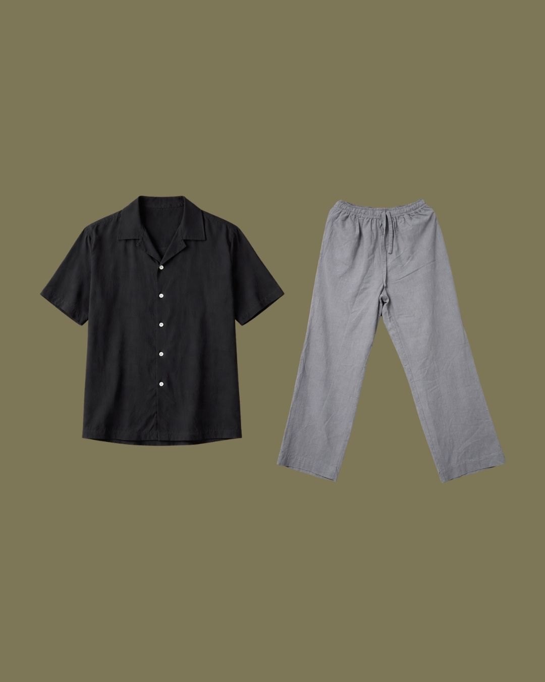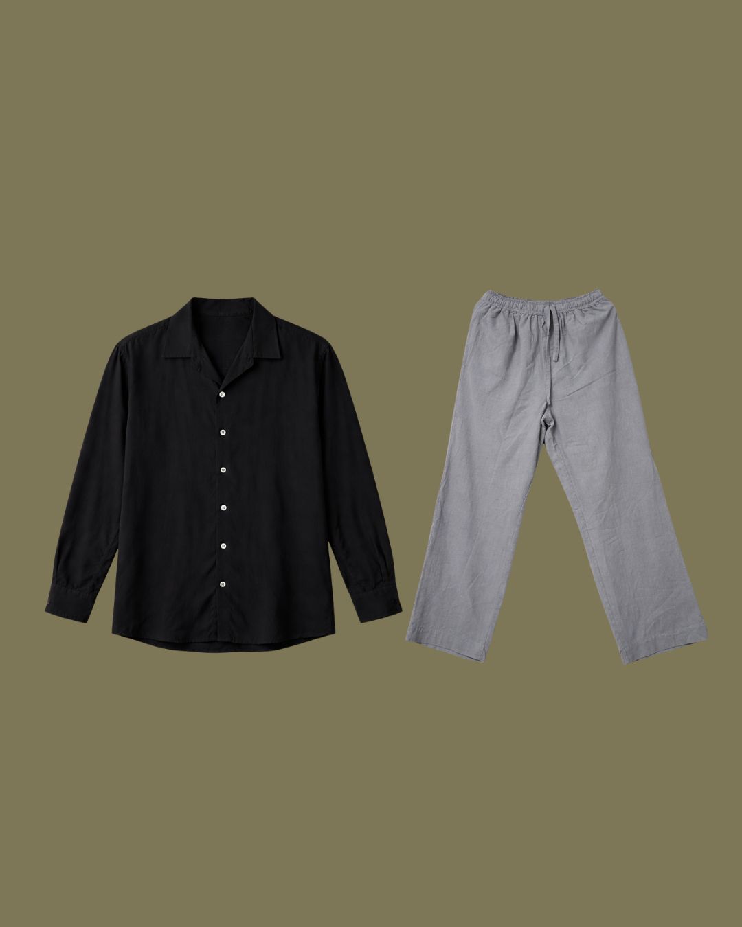 The Black Shirt & Grey Pant Set offers multiple styling options: