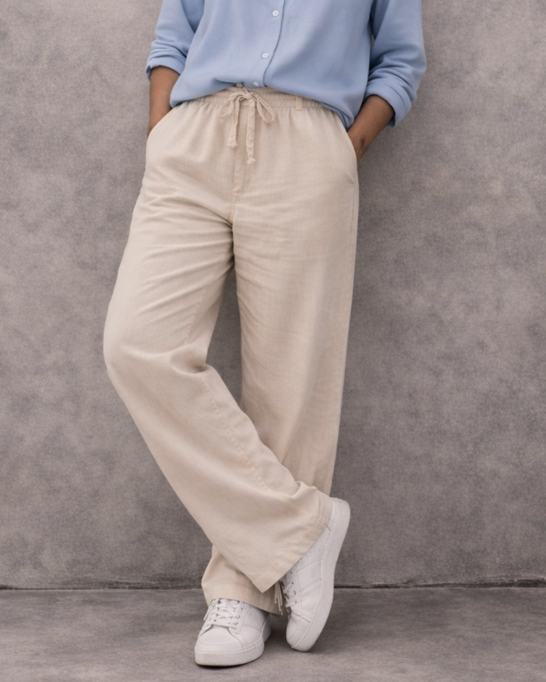 Whether styled for a relaxed morning, a weekend outing, or a modern minimalist outfit, this pant becomes a wardrobe staple — classic, airy, and always comfortable.