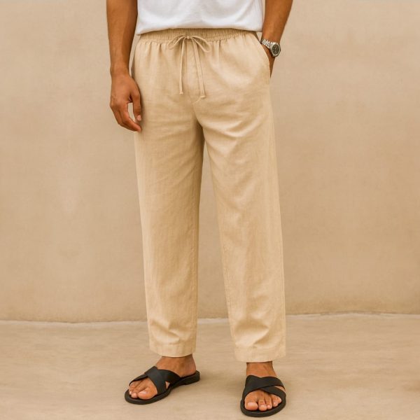 Style with a darker linen shirt or mandarin collar top for contrast, finished with loafers or leather sandals.