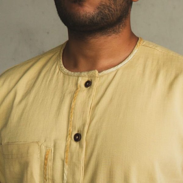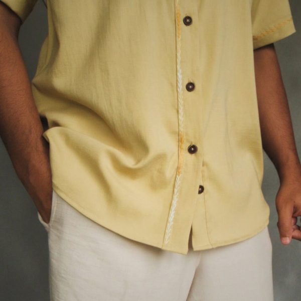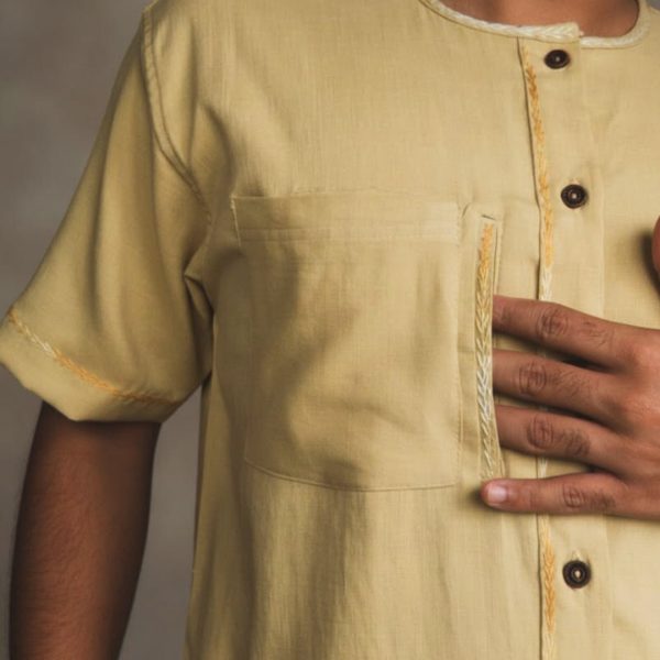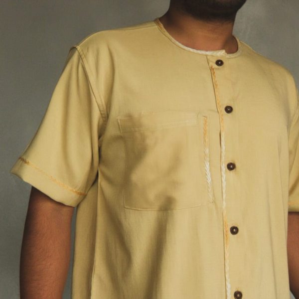 With its desert-inspired tone and visible handwork, each shirt is slightly unique — a wearable story of human touch and mindful creation.