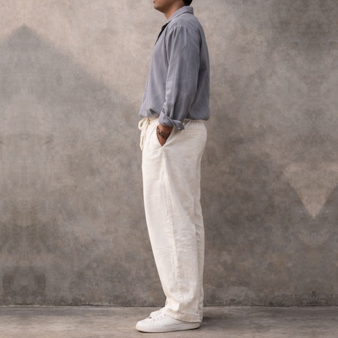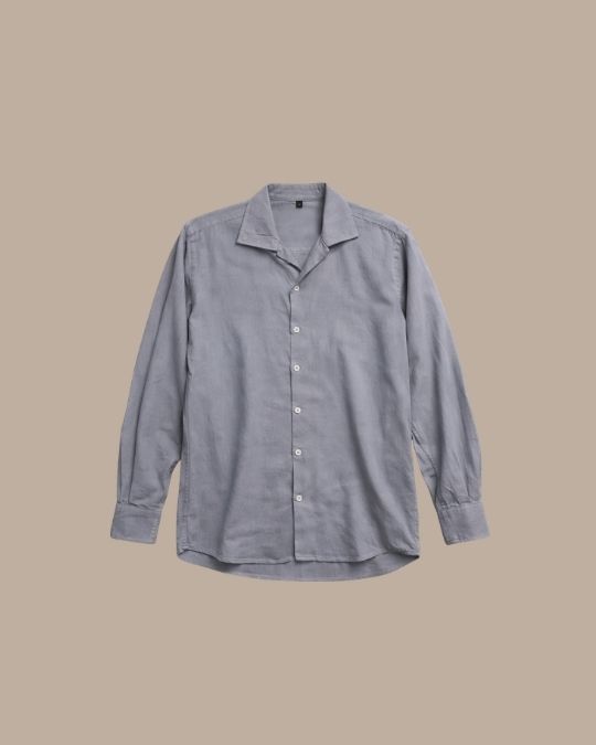 The Lans Oversized Grey Cuban Long Sleeve Shirt paired with the Oversized Linen Long Pant delivers a confident balance of softness, structure, and contemporary proportion.