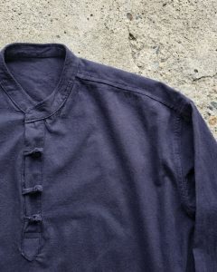 Designed with a structured mandarin collar and distinctive loopline front detail, this piece balances cultural influence with contemporary proportion. The oversized silhouette allows the fabric to fall with confidence, creating movement without excess.