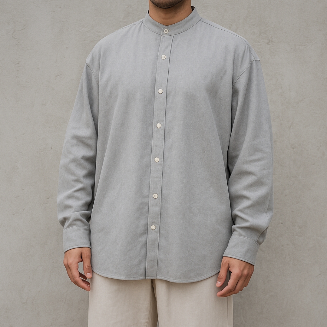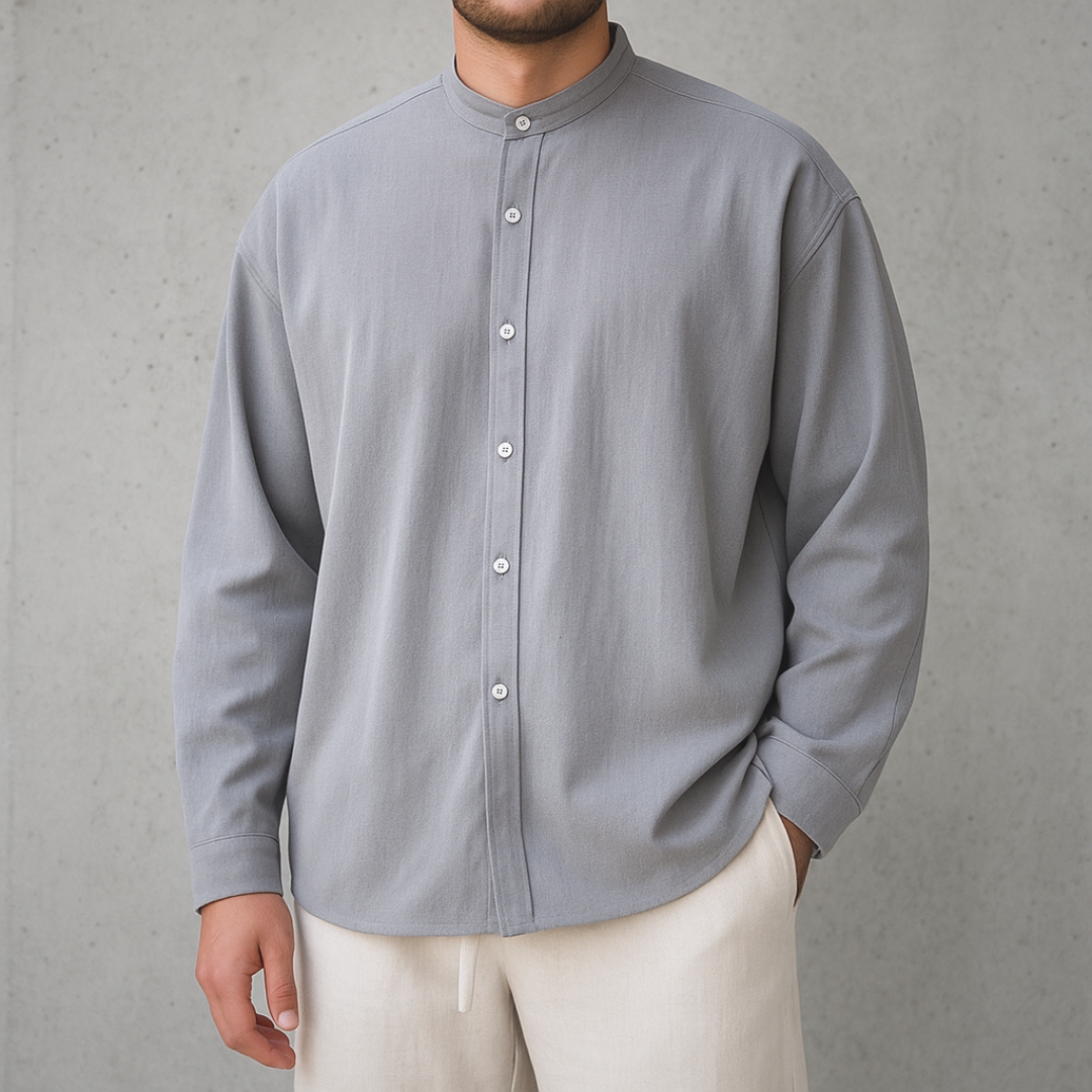 LANS OVERSIZED WASHED COTTON MANDARIN LONG SLEEVE BUTTON-DOWN SHIRT | (XS–4XL)