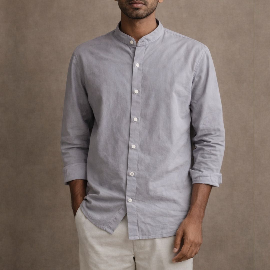 Lans Oversized Mandarin Washed Cotton Mandarin Long Sleeve Button Down Shirt – ASH ( XS to 4XL )