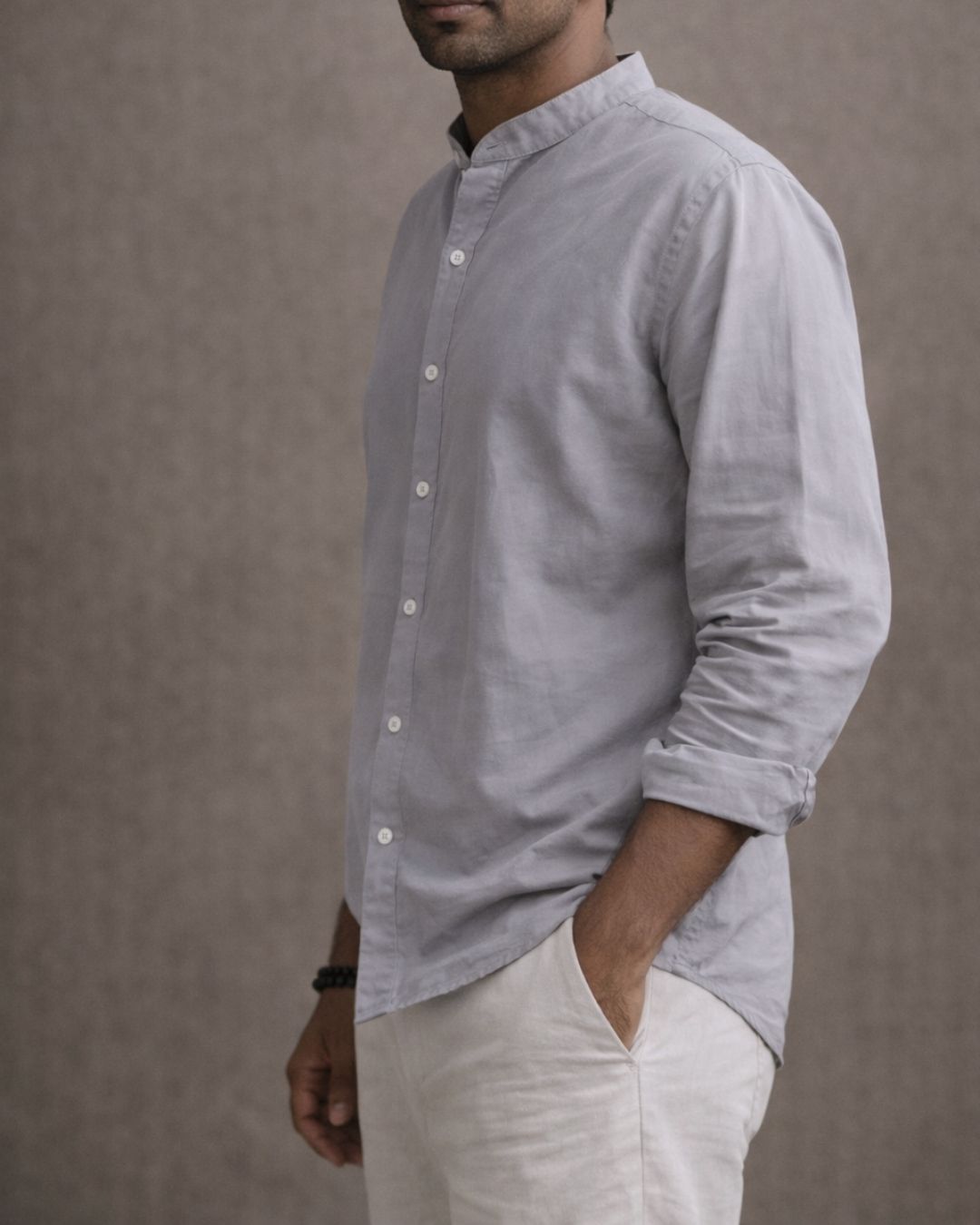 • Mandarin Collar — sleek, banded neckline for minimalist elegance