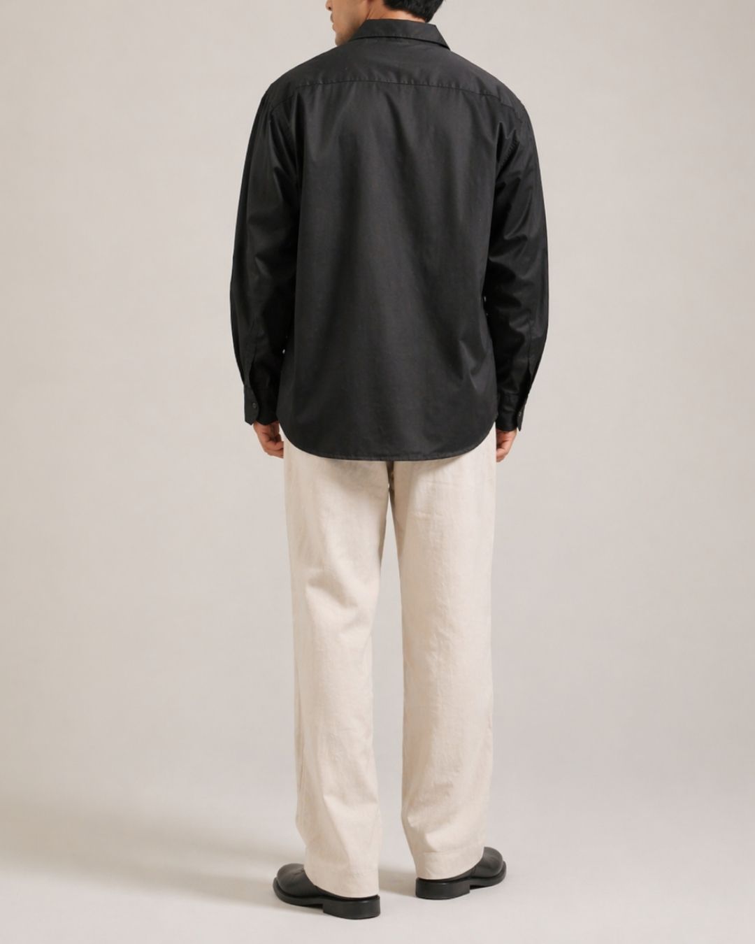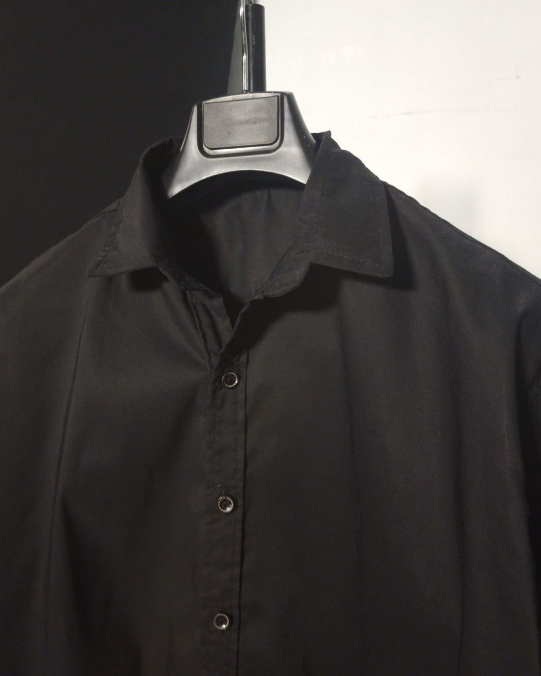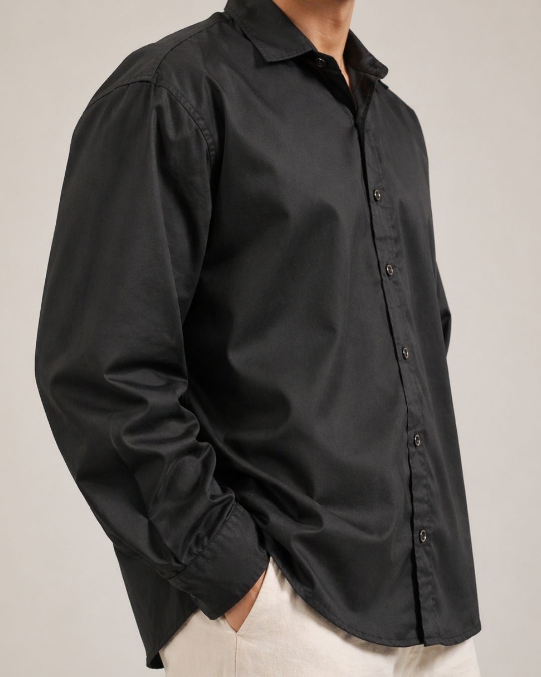 Versatile and timeless, this black shirt transitions easily between casual and refined outfits, making it a staple piece in any modern wardrobe.