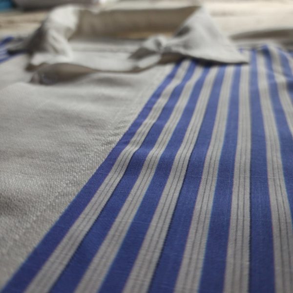 Breathable 100% linen base paired with crisp 100% cotton stripes offers a cool, airy feel with visible natural texture—perfect for tropical climates.