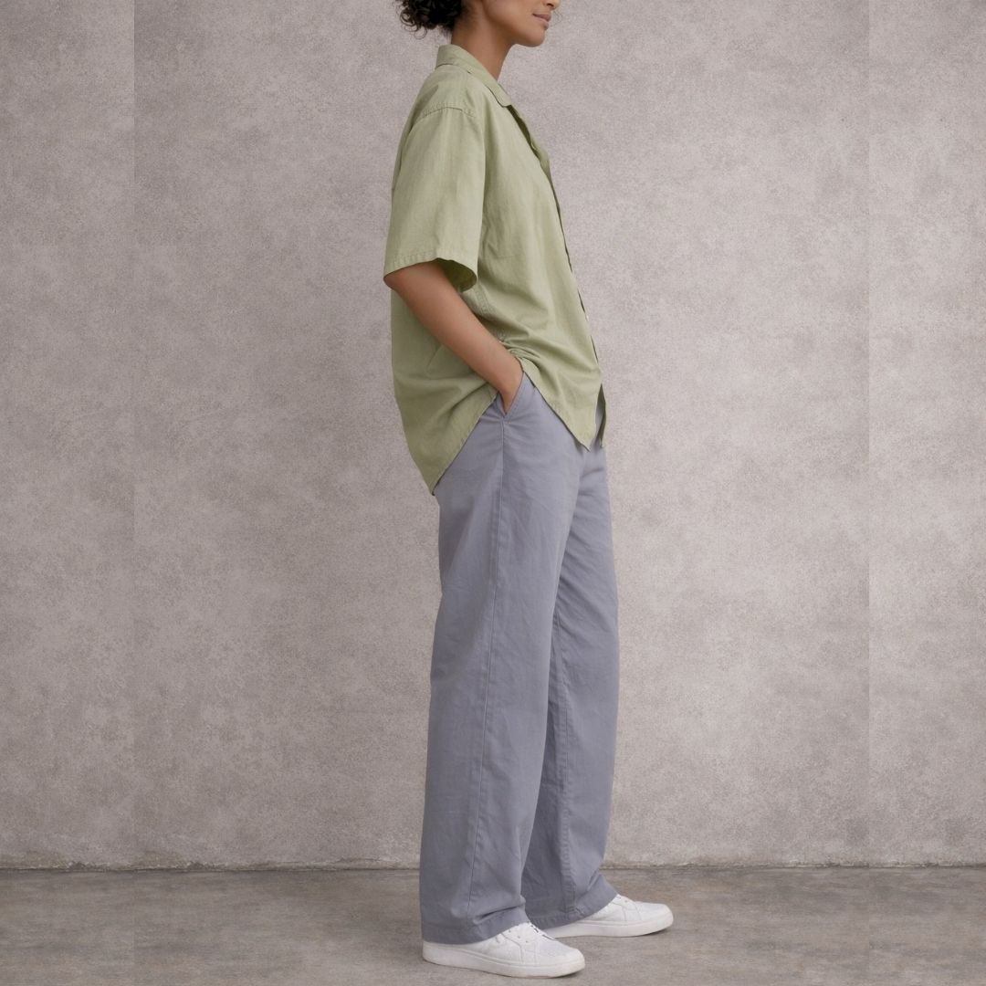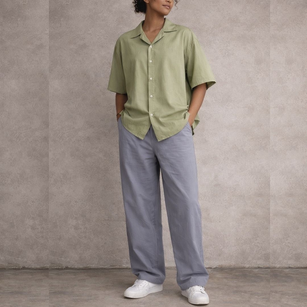 The Lans Oversized Olive Green Short Sleeve Shirt & Ash Long Pant set is made for those who value proportion, movement, and subtle presence — where minimalism speaks with confidence.