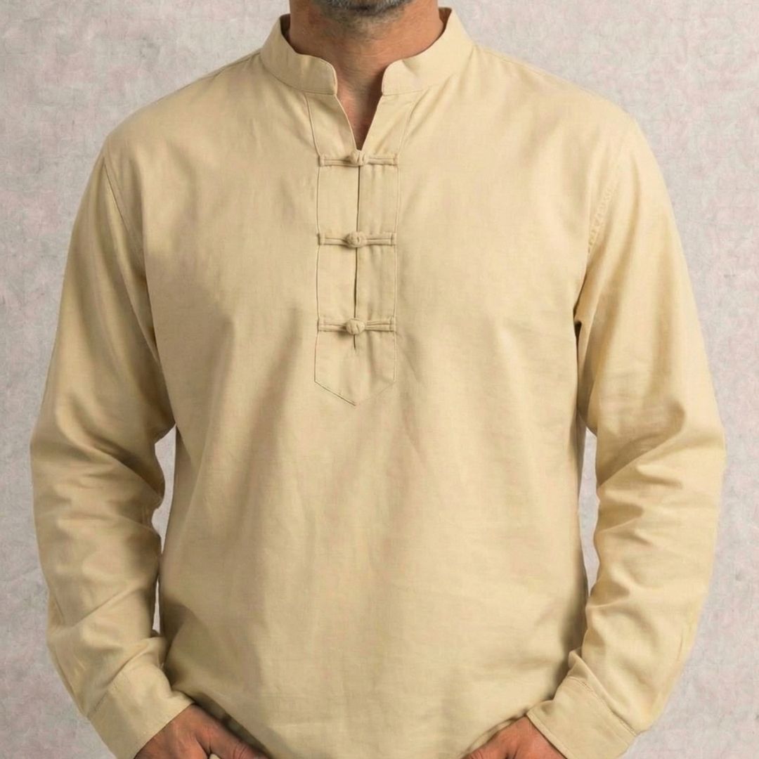 Relaxed twinband loopline shirt crafted in breathable cotton and linen, designed for comfort and everyday wear.