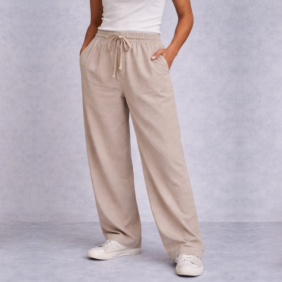 Greige — a quiet blend of grey and beige — gives this pant a grounded, versatile character that moves effortlessly between casual, resort, and elevated everyday styling. Subtle, modern, and timeless, it’s a colour made to work across seasons.