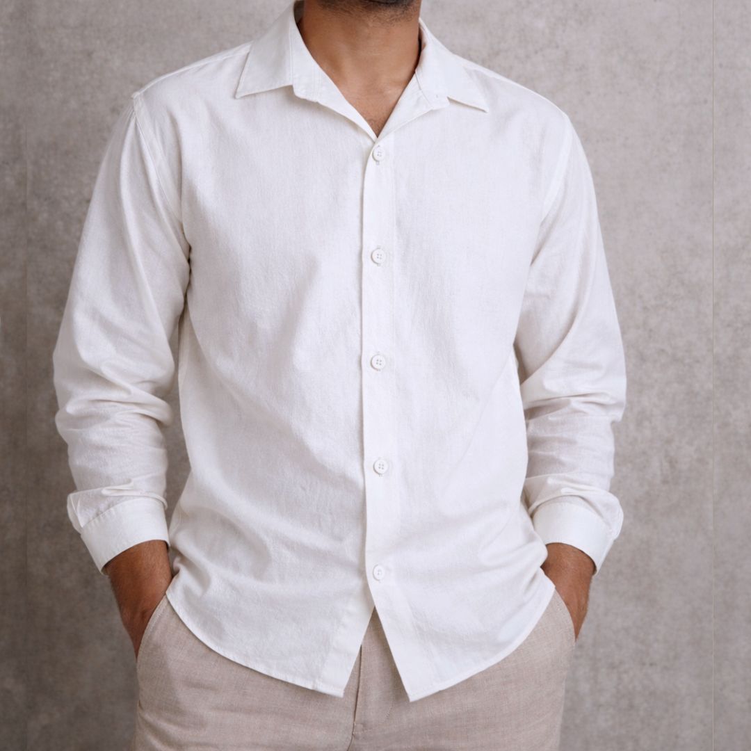 Thoughtfully made to balance comfort, simplicity, and relaxed elegance — the Relaxed Cotton Long Sleeve Cuban Collar Shirt is a modern essential designed for slow living and everyday ease.