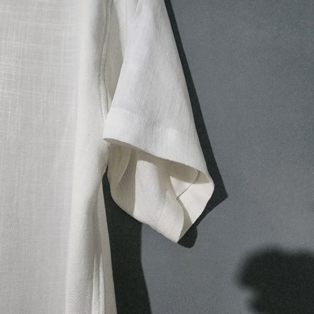 Fabric: lightweight washed linen blend, airy and breathable with natural slub texture.