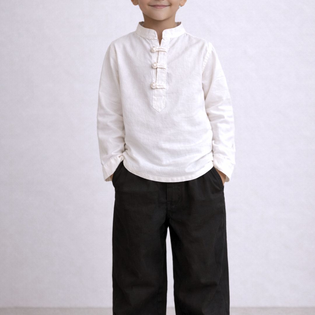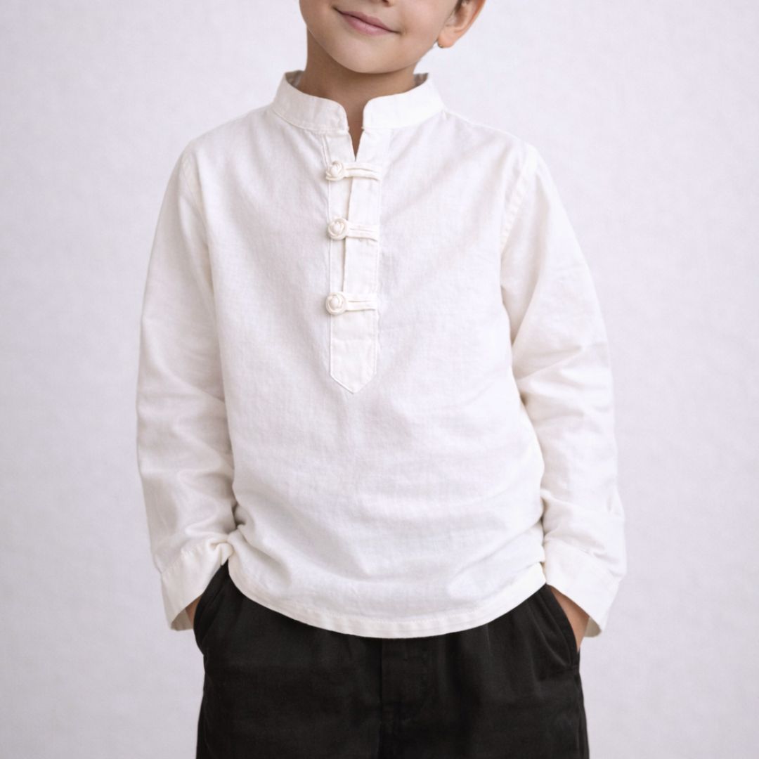 The loopline shirt features minimal, heritage-inspired detailing that adds character without excess. Designed to be soft on the skin and easy to wear, it offers a calm, timeless look for kids.