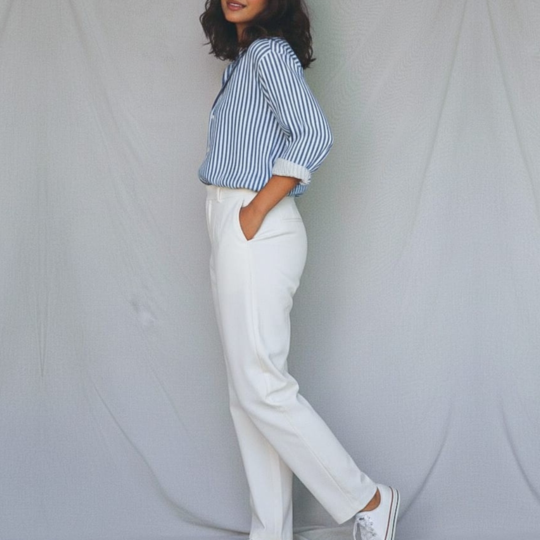Pairs effortlessly with linen trousers, pleated pants, shorts, or denim.