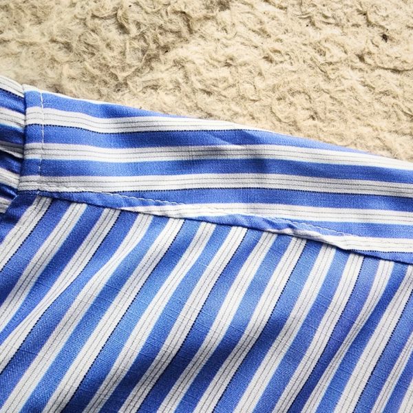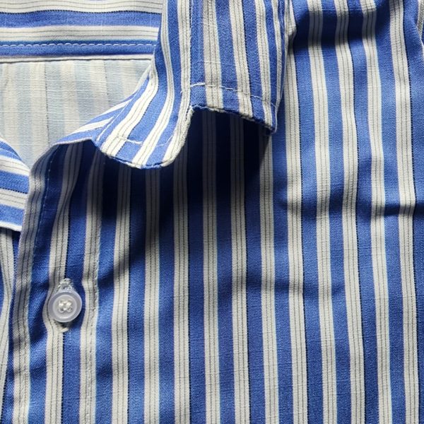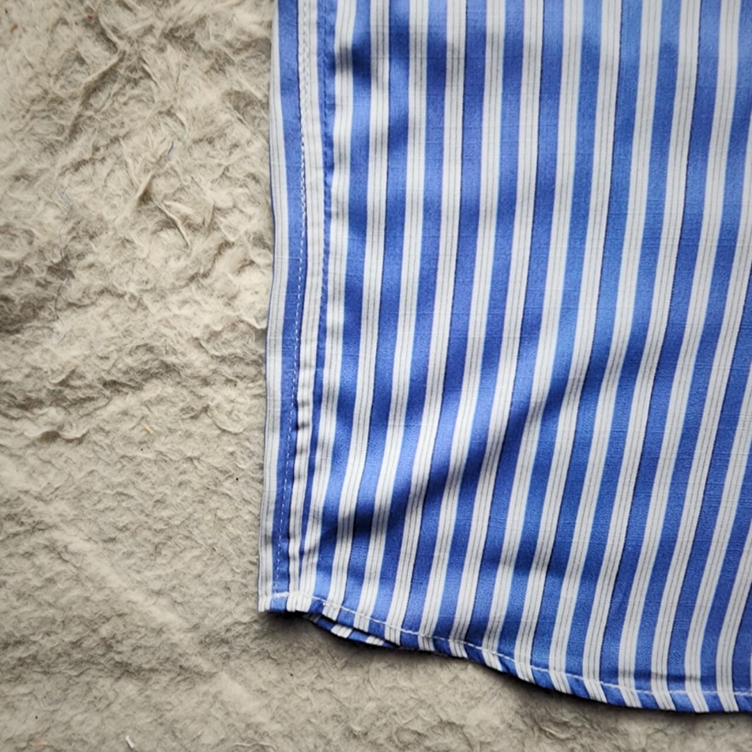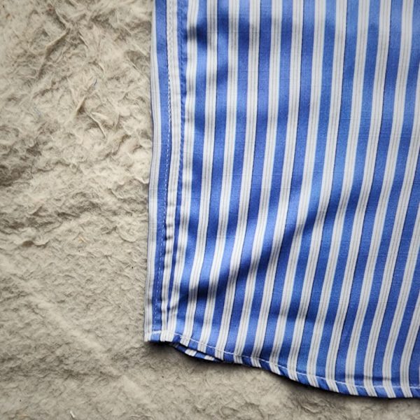 Front: Button-down closure with matching stripe alignment for a seamless look.