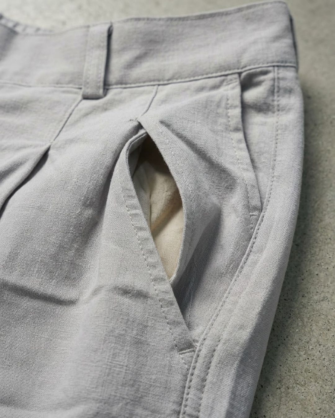 The pleated construction provides extra room through the waist and thigh, allowing natural movement without compromising the pant’s tailored appearance. Its relaxed structure makes it suitable for long days, city wear, or travel, where comfort and style are equally important.