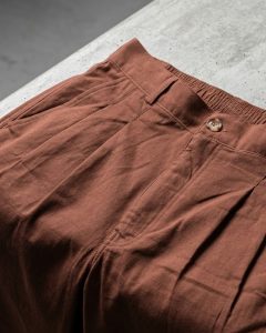 The pleated construction provides extra room through the waist and thigh, allowing natural movement without compromising the pant’s tailored appearance. Its relaxed structure makes it suitable for long days, city wear, or travel, where comfort and style are equally important.