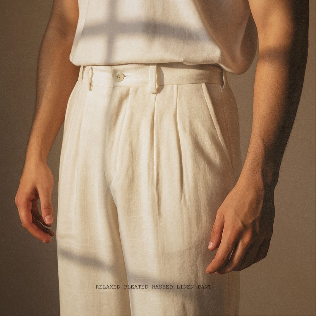 Discover the perfect blend of laid-back ease and refined tailoring with our Lans Relaxed Pleated Linen Long Pant — a versatile staple designed for modern sophistication.
