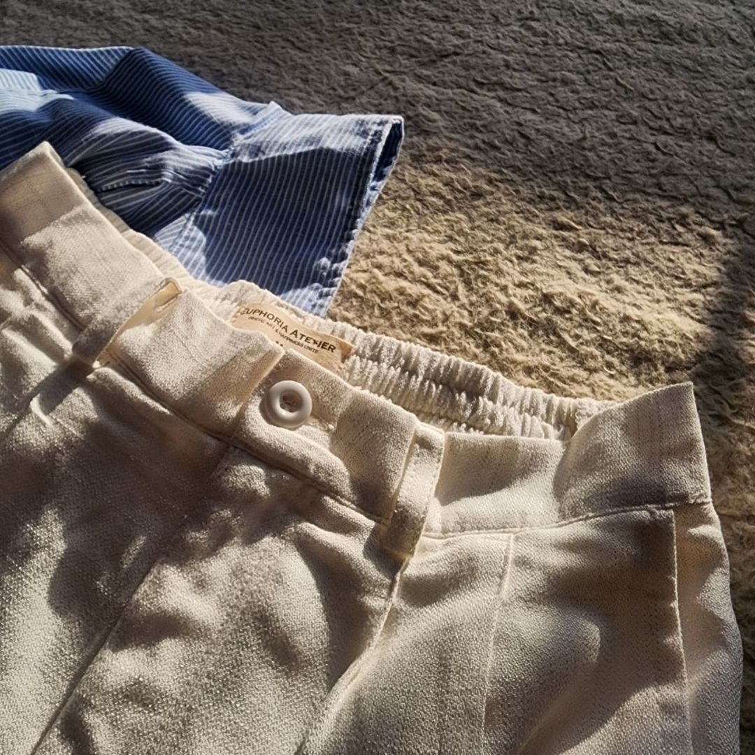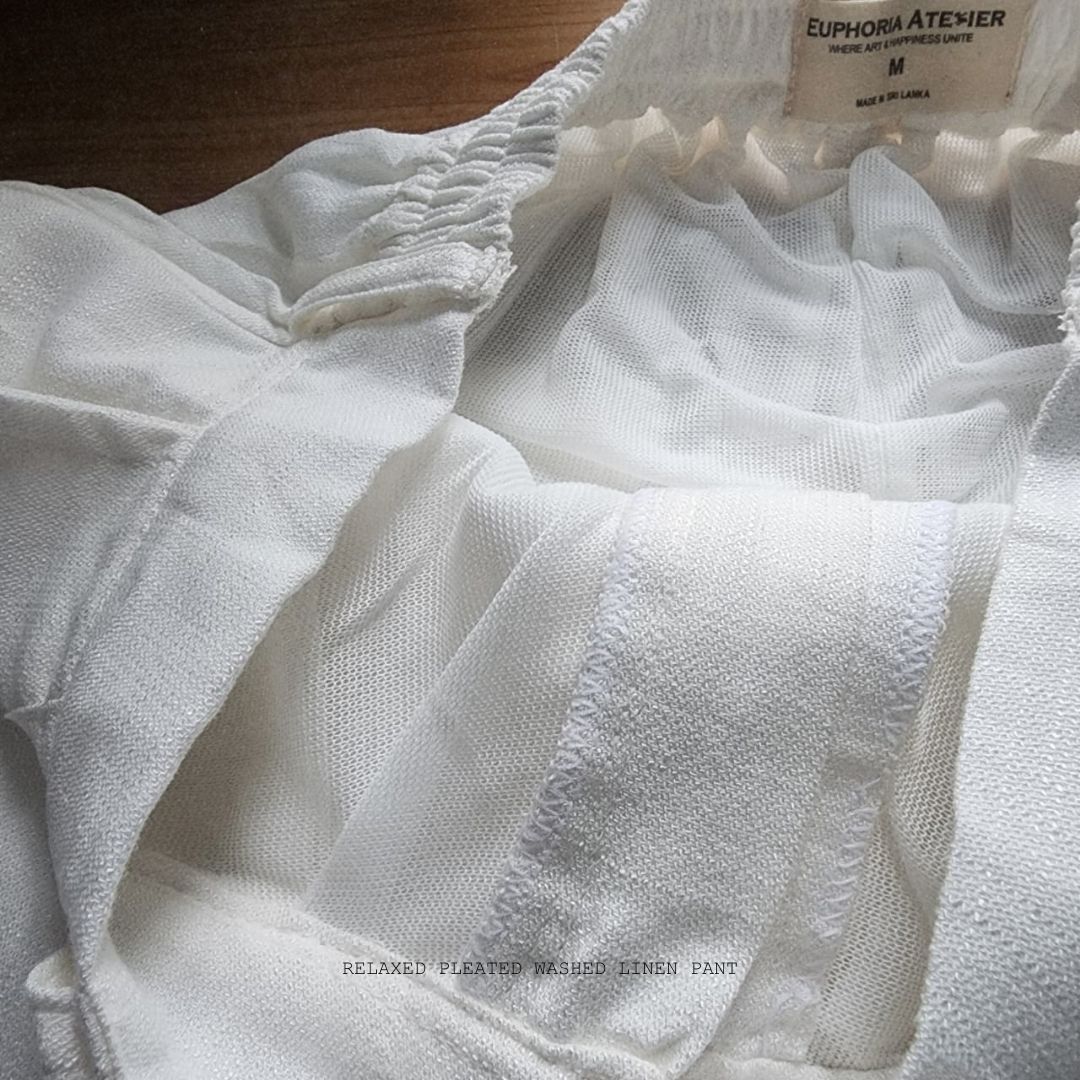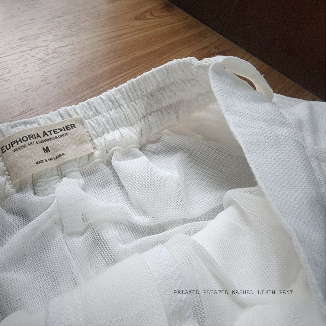 Handmade in Sri Lanka with precision craftsmanship, these trousers embody understated elegance while celebrating authentic Sri Lankan artistry. With soft pleats and a relaxed cut, they offer a naturally flowing drape ideal for everyday wear or elevated styling.