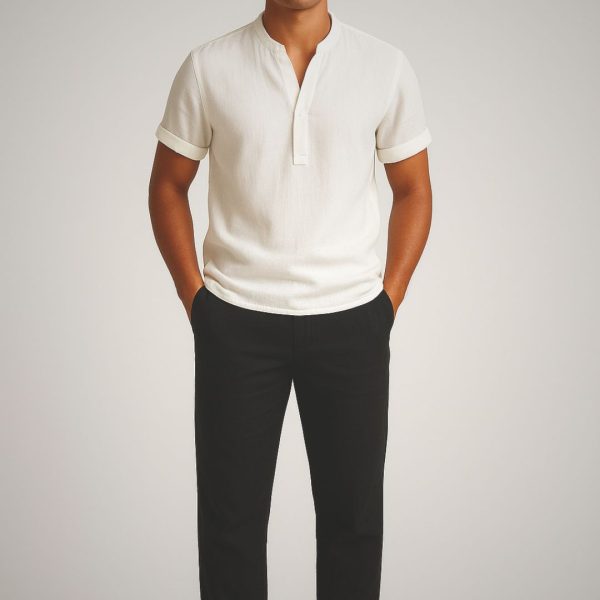 Effortless, refined, and timeless — the Lans Pure V Linen Shirt is crafted for warm climates and laid-back sophistication. Made from a breathable linen or linen-cotton blend, this piece blends ease of movement with minimal detailing. The open V-neckline creates a soft, modern silhouette, while the rolled sleeves and clean hem make it a versatile staple for everyday and resort wear.
