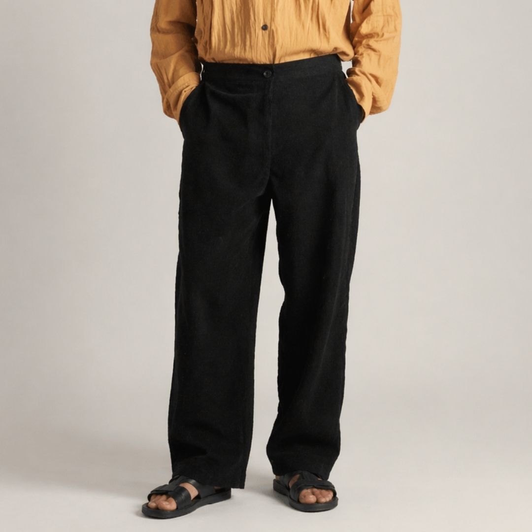 Crafted from corduroy fabric, the pant features a textured surface that adds depth while maintaining a soft and comfortable feel. The rust-black tone introduces a unique color variation that sits between earthy warmth and deep neutrality, making it easy to style across seasons.