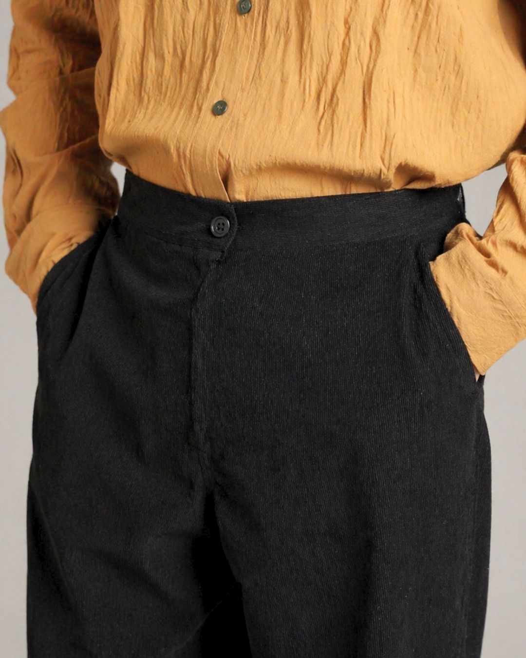The Urban Corduroy Pant – Rust Black can be styled in multiple ways: