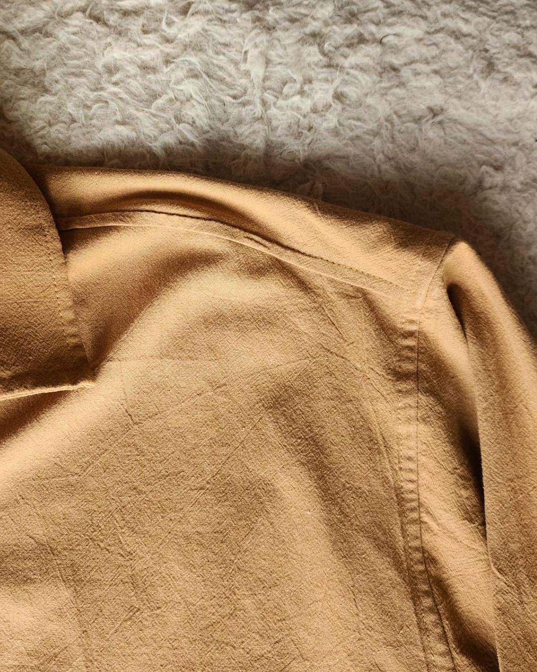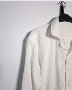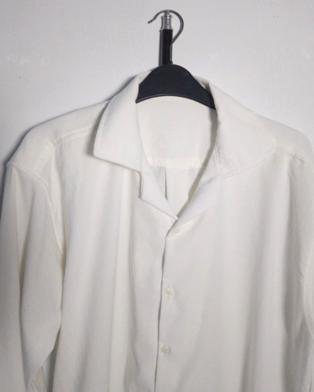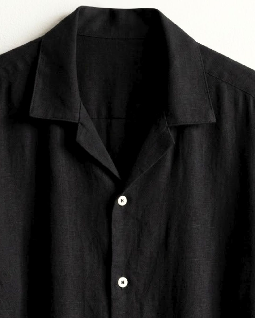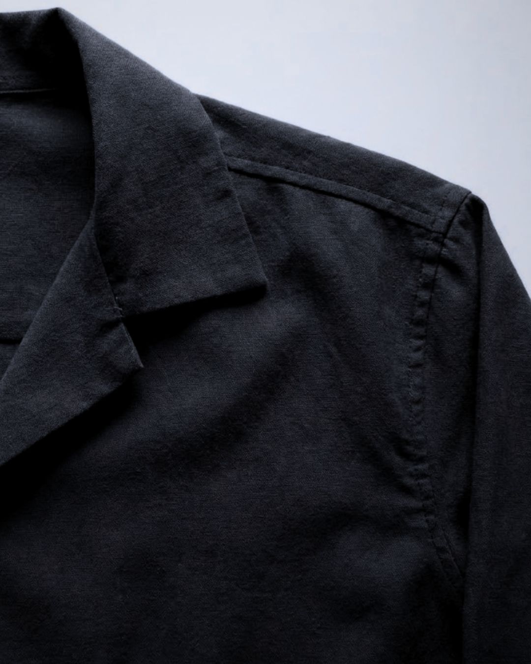 The open Cuban collar brings a sense of calm and openness, while the long sleeves and button-down structure keep the look grounded and versatile. It’s a piece made to move gently with the body — effortless, breathable, and quietly elegant.