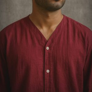 Lans Oversized Minimalist Band Collar Granada Linen Shirt – Maroon (XS–4XL)