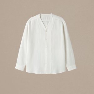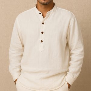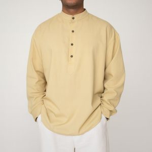 Lans Oversized Minimalist Band Collar Granada Linen Shirt (XS–4XL)