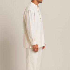 Lans Oversized Mandarin collar Nomad Resort Linen Kurtha – Off White (XS–4XL)