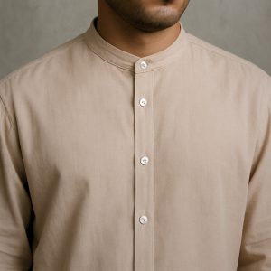 Lans Relaxed Mandarin Washed Cotton Mandarin Long Sleeve Button Down Shirt – Beige ( XS to 4XL )