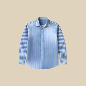 Lans Relaxed Marbella Stripe Point Coller Cropped Shirt – Blue (XS to 4XL)